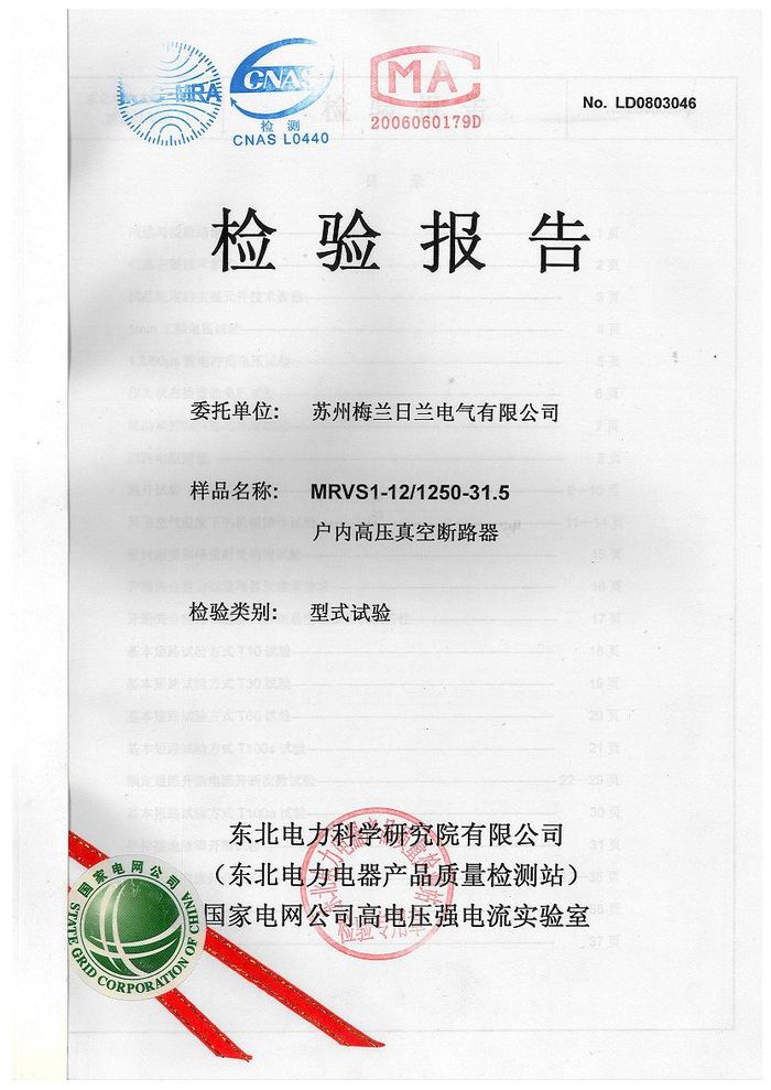 (成套)MRVS1高壓真空斷路器資質(zhì)證書(shū)