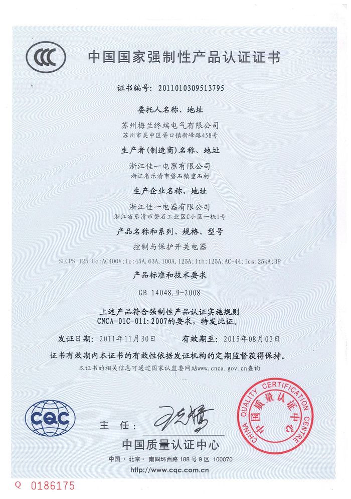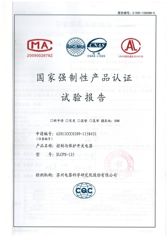 SLCPS-125控制與保護(hù)開(kāi)關(guān)資質(zhì)證書