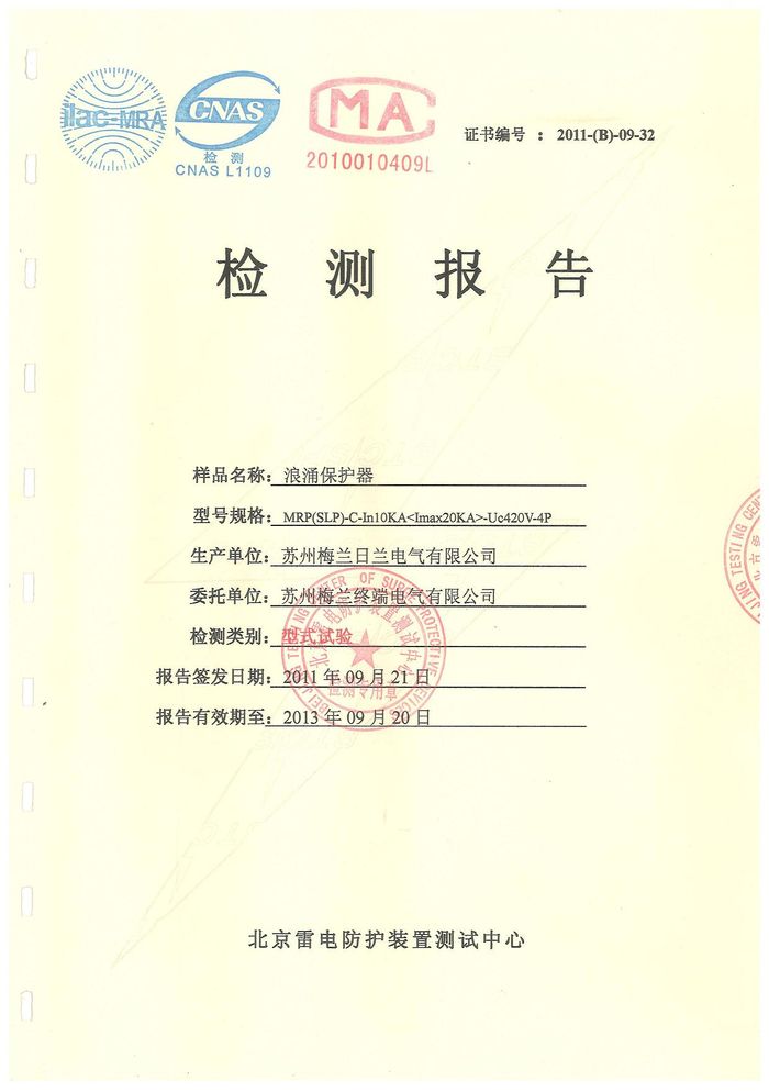 浪涌 MRP10KA資質(zhì)證書