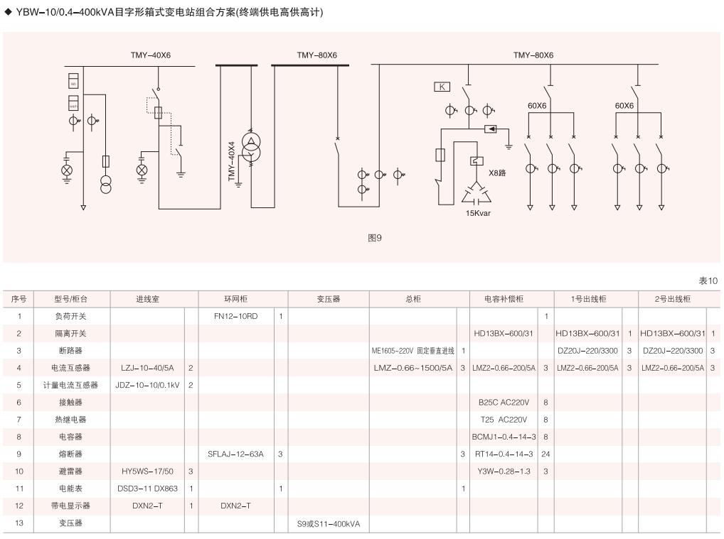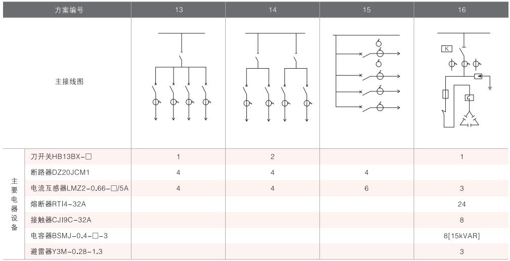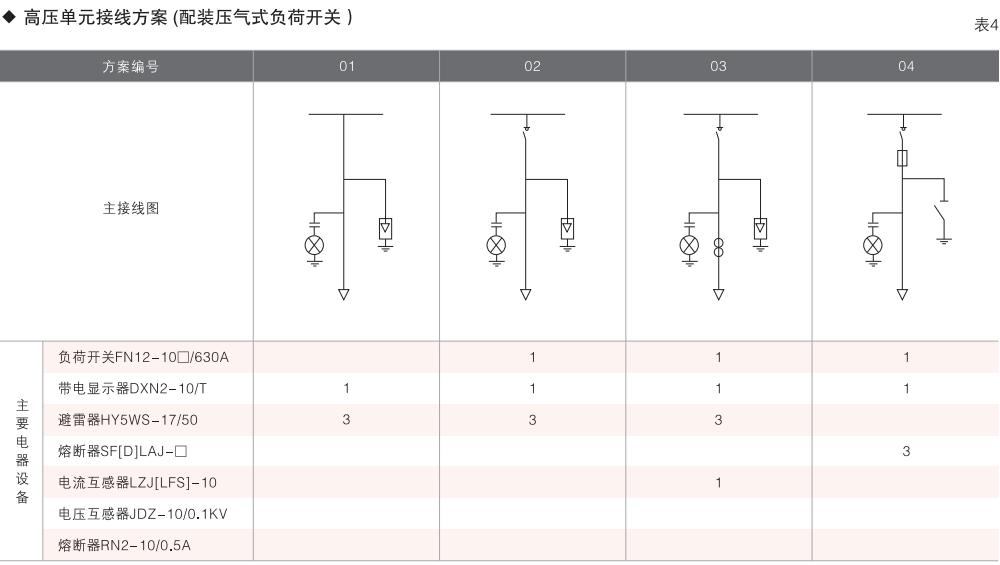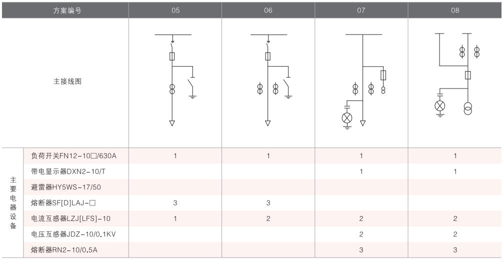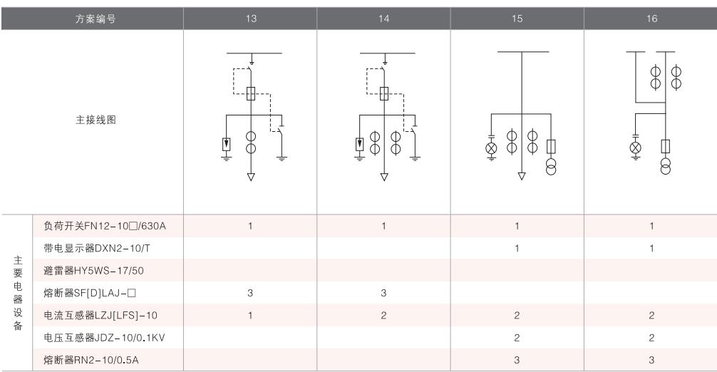 表6~列舉了一些典型組合接線方案,供用戶和設(shè)計單位參考。(以配裝壓氣式負(fù)荷開關(guān)為例)