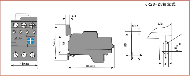 安裝方式:與接觸器插入安裝或獨(dú)立安裝。