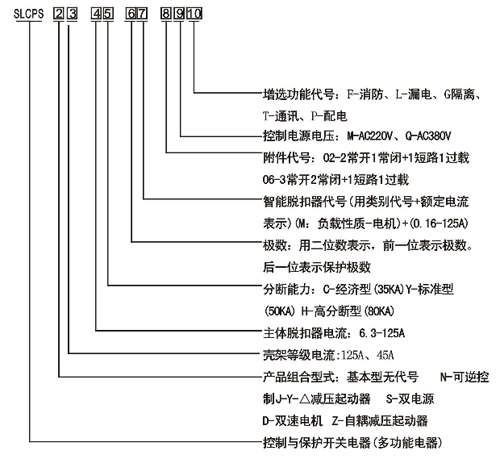 用戶在訂貨時(shí)應(yīng)寫(xiě)明SLCPS控制與保護(hù)開(kāi)關(guān)電器的產(chǎn)品型號(hào)、規(guī)格、短路脫扣器額定電流、智能控制器額定工作電流、負(fù)載性質(zhì)、線圈控制電壓、接線方式等內(nèi)容。