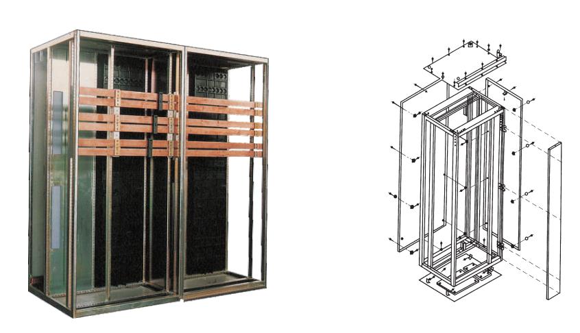 柜體基本結構為本公司適用組合式結構.以C型型材(基本模數(shù)E=25mm)為主要結構件,采用鎖緊自攻螺釘和8.8級高強度螺栓緊固而成,因而柜體精度高、剛性好、接地連續(xù)性好。