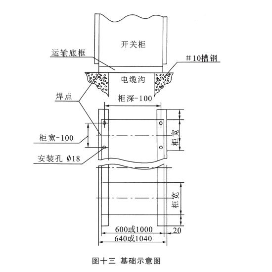 基礎處理:電纜溝的寬度由用戶自己選定,用10#槽鋼按圖十一方式預埋并與地面平。如果運輸?shù)坠衽c基礎槽鋼用螺栓聯(lián)接,則基